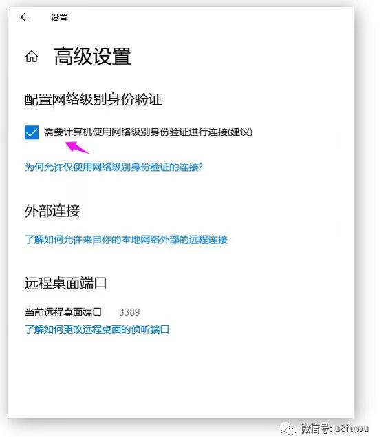 遠(yuǎn)程桌面高級(jí)設(shè)置中需要開(kāi)啟“需要計(jì)算機(jī)使用網(wǎng)絡(luò)級(jí)別身份驗(yàn)證進(jìn)行連接”,從而保證RDP(遠(yuǎn)程終端)協(xié)議安全。