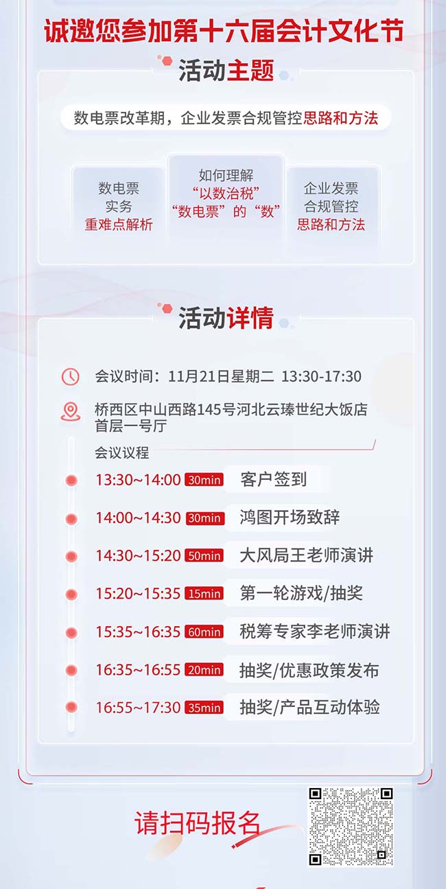 第十六屆會計文化節(jié)——石家莊站將在 11 月 21 日云瑧世紀大飯店盛大開幕!