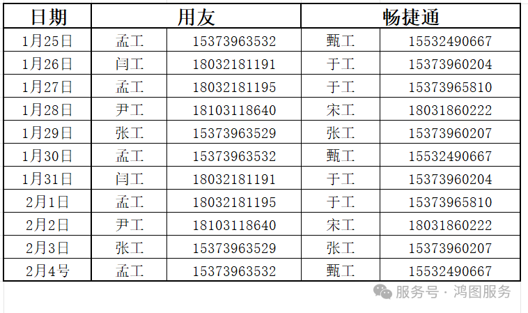 值班安排: