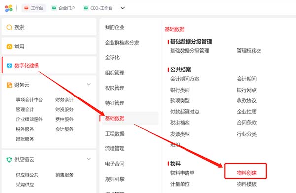 1、路徑:數(shù)字化建模-基礎(chǔ)數(shù)據(jù)-物料創(chuàng)建