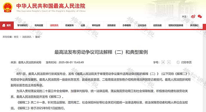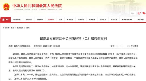 8月1日,最高法正式發(fā)布了《勞動爭議司法解釋和典型案例(二)》
