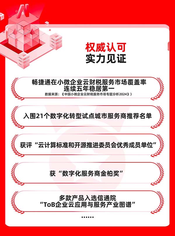 根據(jù)易觀發(fā)布的《中國(guó)小微企業(yè)云財(cái)稅服務(wù)市場(chǎng)專題分析2024》,暢捷通在小微企業(yè)云財(cái)稅服務(wù)市場(chǎng)覆蓋率連續(xù)五年穩(wěn)居第一,在用戶滿意度、產(chǎn)品性能及廠商綜合實(shí)力等核心維度的調(diào)研評(píng)測(cè)中均名列第一。公司還榮獲“云計(jì)算標(biāo)準(zhǔn)和開(kāi)源推進(jìn)委員會(huì)優(yōu)秀成員單位”稱號(hào)。此外,暢捷通入選了多項(xiàng)企業(yè)財(cái)稅服務(wù)創(chuàng)新排行榜,多款產(chǎn)品入選中國(guó)信通院“ToB企業(yè)云應(yīng)用與服務(wù)產(chǎn)業(yè)圖譜”。