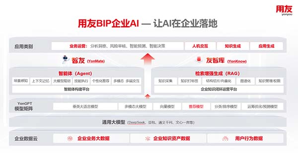 這一切并非偶然,用友BIP企業(yè)AI基于AIX數(shù)據(jù)X流程原生一體架構(gòu),提供從數(shù)據(jù)層、模型矩陣層、平臺(tái)層到應(yīng)用層的完整能力體系,在業(yè)務(wù)運(yùn)營(yíng)、人機(jī)交互、知識(shí)與應(yīng)用生成等多場(chǎng)景實(shí)現(xiàn)AI在企業(yè)的落地,全面賦能企業(yè)智能化升級(jí)。