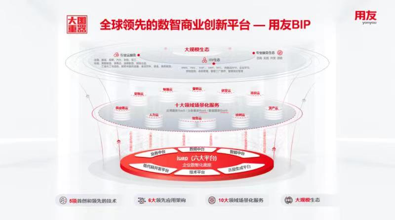 作為企業(yè)數(shù)智化云服務(wù)與軟件龍頭廠商,用友自1988年創(chuàng)立以來,一直專注于信息技術(shù)在企業(yè)與公共組織應(yīng)用與服務(wù)領(lǐng)域,先后發(fā)展成為中國最大的財務(wù)軟件提供商、亞太最大全球前10的ERP軟件提供商,并累計服務(wù)了上萬家大型企業(yè)信息化。近年來,用友戰(zhàn)略研發(fā)推出了全新一代服務(wù)企業(yè)數(shù)智化的商業(yè)創(chuàng)新平臺—用友BIP,已先后服務(wù)了海內(nèi)外不同規(guī)模的眾多行業(yè)領(lǐng)先企業(yè)的數(shù)智商業(yè)創(chuàng)新,被重要央媒譽(yù)為企業(yè)數(shù)智化的“大國重器”。