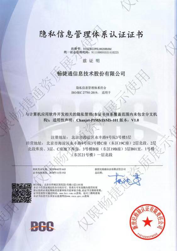 ISO27701是國際標(biāo)準(zhǔn)化組織(ISO)和國際電?工委員會(IEC)聯(lián)合發(fā)布的隱私信息管理體系國際標(biāo)準(zhǔn),它是對ISO27001信息安全管理體系的擴(kuò)展。ISO27701不僅是一個管理體系,還是一個通用的信息安全控制措施集合,在14個控制域里提出了35個安全控制目標(biāo)和114個控制措施,全面保障公司的信息安全。用友暢捷通已于2021年就通過了ISO27001資質(zhì)認(rèn)證。