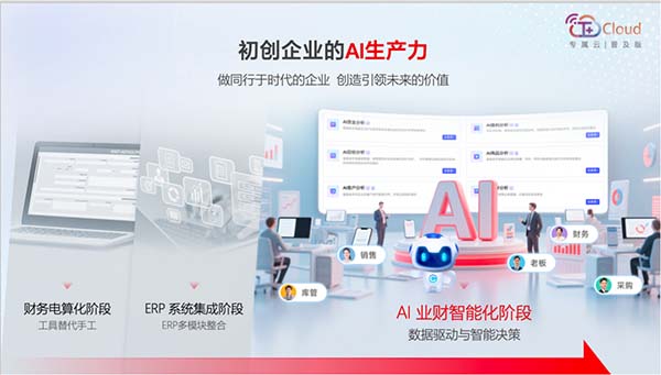 隨著全球AI技術浪潮席卷各行各業(yè),小微企業(yè)如何搭乘這班快車,實現(xiàn)業(yè)財管理的智能化升級?暢捷通T+Cloud專屬云普及版全面升級,以“AI普及業(yè)財”為核心理念,旨在幫助小微企業(yè)低成本、高效率地實現(xiàn)數(shù)智化轉型。