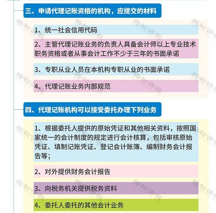除了要求取得上述兩個證外, 對記賬人員、代理機(jī)構(gòu)內(nèi)部管理等都有要求,具體我們準(zhǔn)備了一張導(dǎo)圖,建議收藏: