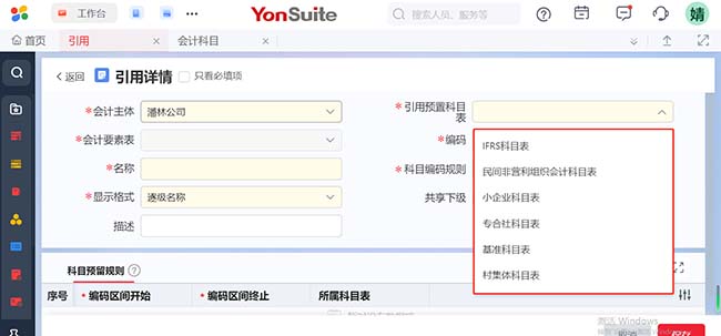 選擇自己需要的科目表類型(注:*為必填項(xiàng))